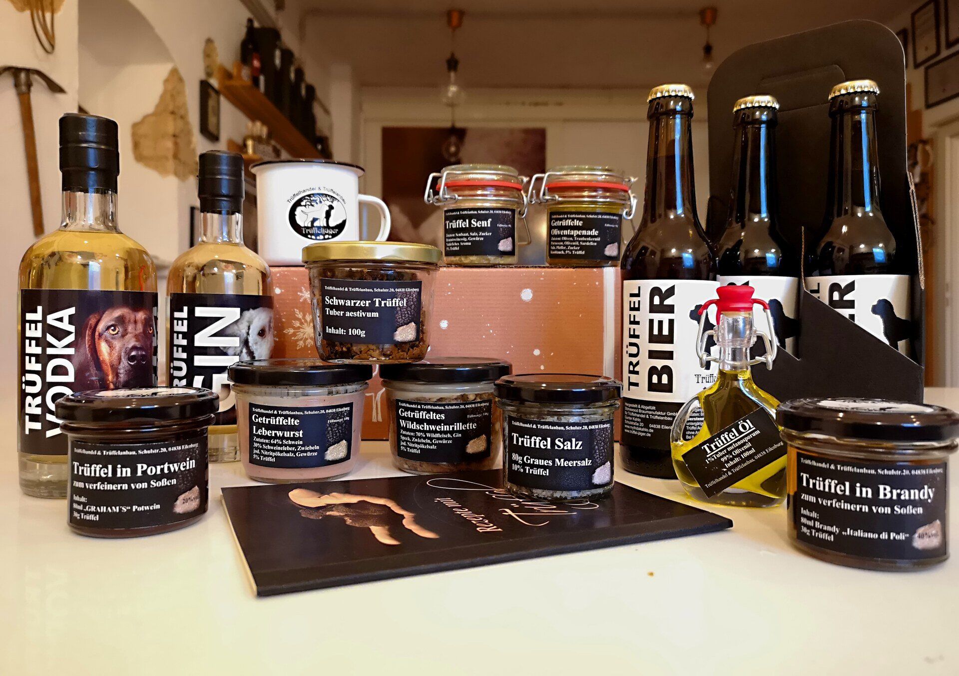 Der faszinierende Geruch, wenn die Trüffel der Erde entnommen werden, verewigen wir als Geschmack in solch einer Flasche. Jede Charge ist einzigartig und unterliegt ihrer eigenen Note. Je nach Jahreszeit enthalten unsere Trüffel-Spirituosen die erntereifen Trüffel der Gattung „Tuber“. Diese kommen aus einer umfassenden Trüffelzucht und werden von eigens ausgebildeten Trüffelhunden „FRIDA und TEMPI“ gesucht und weiterverarbeitet. Unsere Spirituosen werden sorgfältig in liebevoller Handarbeit abgefüllt, etikettiert und nummeriert.